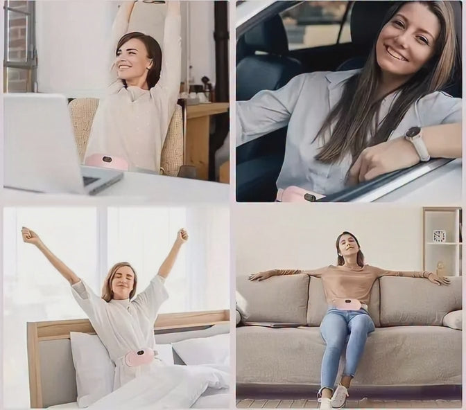 “Cinturón eléctrico de calor terapéutico con masaje ajustable. Suave y portátil, alivia cólicos y tensiones en minutos, brindando confort donde quieras.”